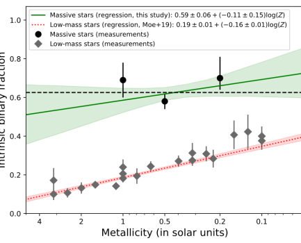 - Sana et al. 2025: A high fraction of close massive binary stars at low metallicity